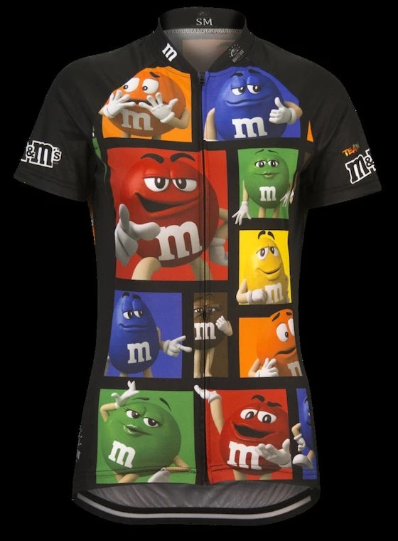 This sharp-looking M&Ms® cycling jersey was inspired by the Dutch painter Piet Mondrian and the De Stijl art movement to which he was a contributor. Bright primary colors (like our favorite candy!) and strong black grid lines are a hallmark of Mondrian’s neoplasticism.