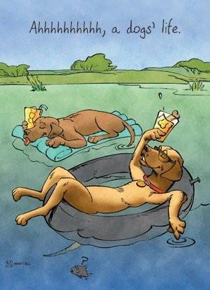 “Ahhhhhhhhh, a dog’s life.” Inside Caption reads: “Do something you love on your birthday. Cheers! ”