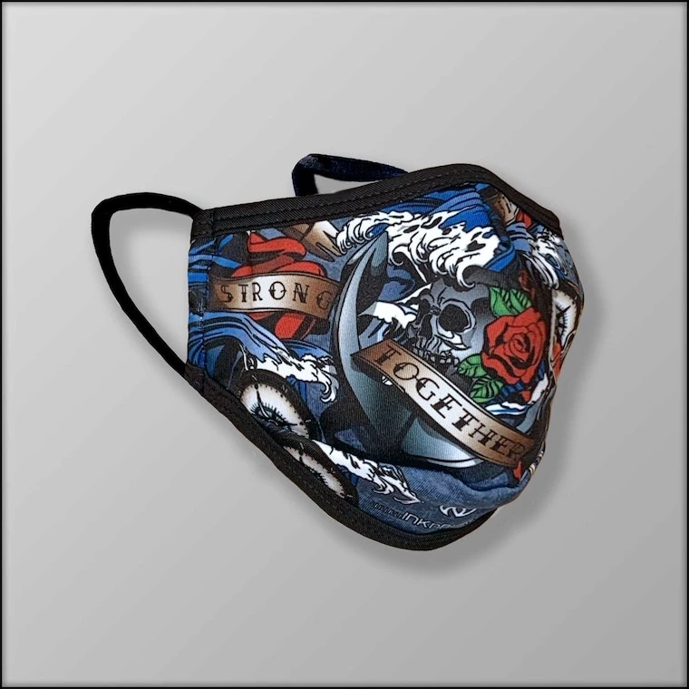 The Anchor design is inspiration to weather any storm… a reminder that we are all stronger if we work together, a compass to help guide the way, birds for hope that shore is near and the turbulent waves that represent the challenges we all face The focus is quality construction, comfortable fit and great function. They are washable and the art is on the outside so you always know which side has been exposed to the environment. Change the cultural perception and make wearing masks cool, fun and comfortable! If everyone wears a mask, “I’m protecting you and you are protecting me”.