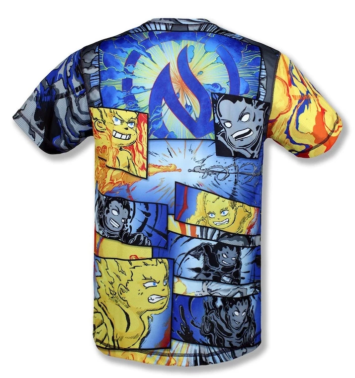 Have you ever wondered how INKnBURN came to be? The INKnBURN Men’s Epic Tech Shirt illustrates the backstory in classic comic book style. Witness the molten hot fury of BURN in an explosive battle with the cool and calculating INK. The collision is cataclysmic, but as the dust settles and the clouds clear… the result is a Dry I.C.E. Tech Shirt that will stand the test of time, won’t show sweat and will keep you comfortable for all your epic runs, workouts or races!