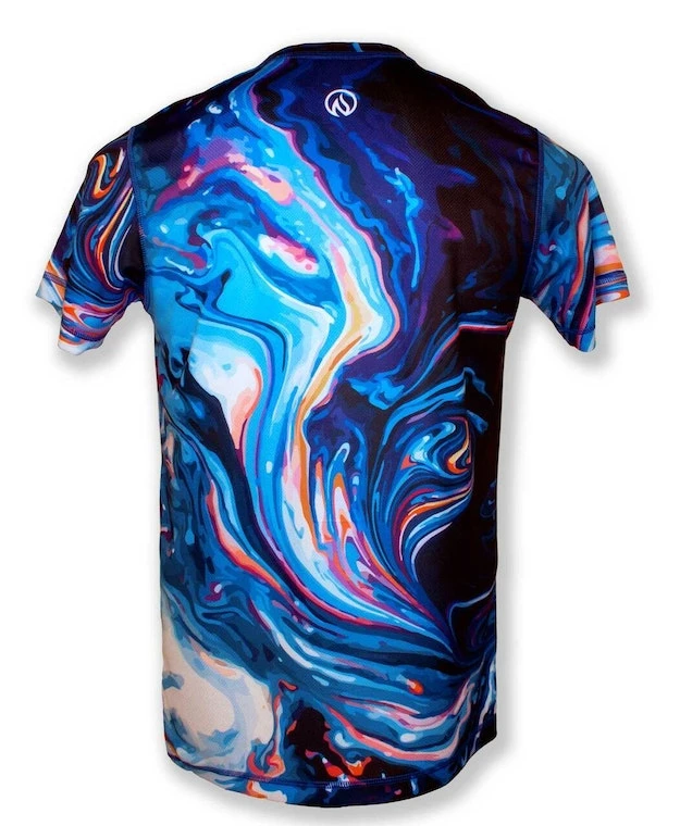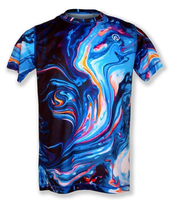 The INKnBURN Men’s Hydro Tech Shirt is inspired by hydro dip painting. You gotta love the freedom and fluid look of this design! No really – you gotta! A great reminder to relax and go with the flow. This light-weight, tech shirt is designed for speed, but also works well as a cool, kick-back top that won’t show sweat! INKnBURN apparel doesn’t fade, so this tech will look great years from now! Vibrant art you can’t feel, on our super-light, moisture-wicking Dry I.C.E. Fabric. 100-Mile tested by ultra runners for comfort at extreme distance and a unique, head-turning design.