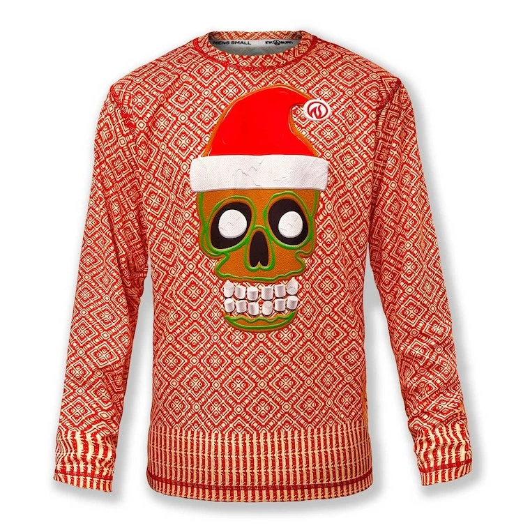 The INKnBURN Men’s Run or Die Holiday Sweater features a sprinkling of marshmallow, a pinch of grinch and a jolly skull Santa all just to bring you a bit of joy, a few laughs and lots of fun for your holiday runs! Made with the our light-weight Dry I.C.E. Fabric this shirt will wick moisture away from your body as you heat up and won’t show sweat. INKnBURN apparel doesn’t fade, so this tech will look great years from now! 100-Mile tested by ultra runners for comfort at extreme distance and a unique, head-turning design
