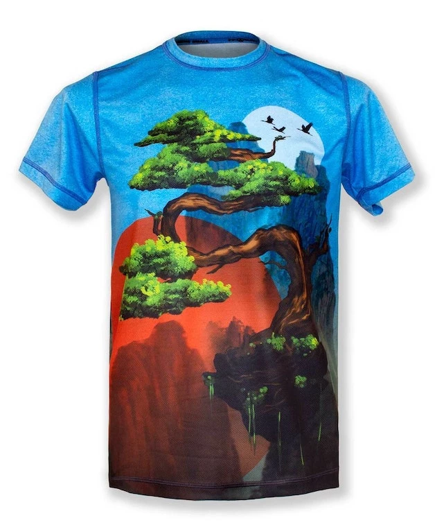 A beautifully sculpted pine shaped by the ability to survive its environment on a lush, floating island is designed to inspire. Up your game to a new level, rise above and feel the float with this stunning new tech shirt! This light-weight, tech shirt is designed for speed, but also works well as a cool, kick-back top that won’t show sweat! INKnBURN apparel doesn’t fade, so this tech will look great years from now! Vibrant art you can’t feel, on our super-light, moisture-wicking Dry I.C.E. Fabric. 100-Mile tested by ultra runners for comfort at extreme distance and a unique, head-turning design.