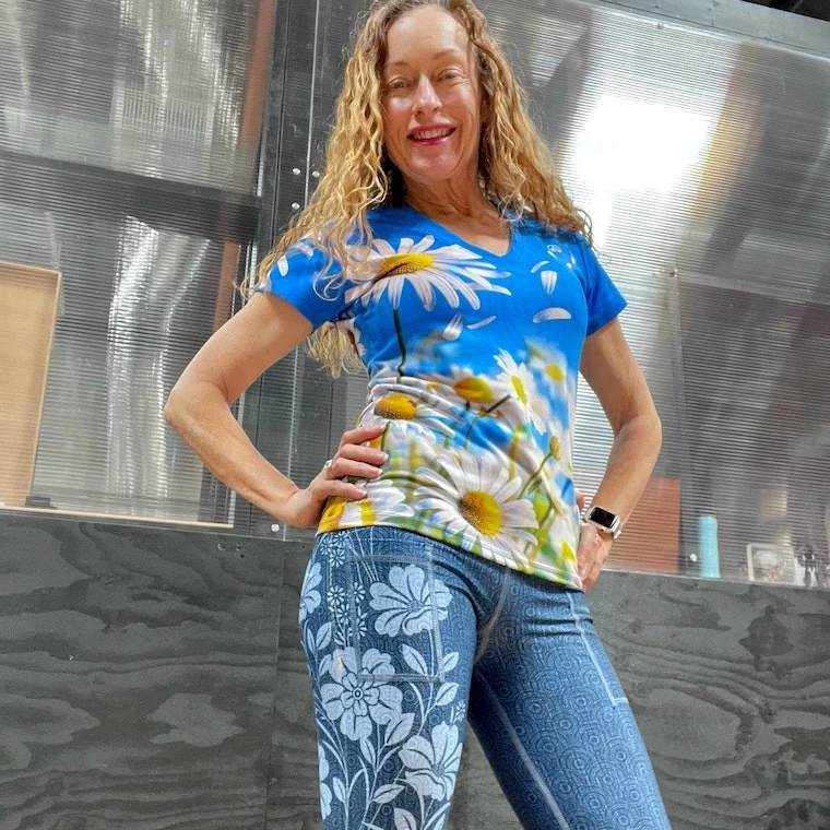 This richly hued bouquet of flowers has a soft, mysterious and moody quality about it. Like wondering through a garden after the sun has set with just enough light to see the colors. This new butter soft V-Neck has a weight and feel similar to cotton but, it wicks away moisture! Because INKnBURN prints their own vibrant lasting colors on each panel before they sew, their art goes from one soft seam to the other. They even print the size on the inside neckband so you don’t have a scratchy tag! This new wonderful feeling, cloud-soft Dry I.C.E. Fabric can be worn to work and then to workout! So comfy you could wear it to sleep, but so great looking you’ll want to wear it everywhere! And, the “V” neckline is perfect for framing your favorite necklace. The perfect top to feel as awesome as you look and spread smiles wherever you go!