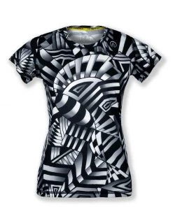 The INKnBURN Women’s Dimensional Tech Shirt is a hand-drawn exploration in line, depth and dimension by INB artist Tiny Bubbles. This light-weight, tech shirt is designed for speed, but also works well as a cool, kick-back top that won’t show sweat! INKnBURN apparel doesn’t fade, so this tech will look great years from now! Vibrant art you can’t feel, on our super-light, moisture-wicking Dry I.C.E. Fabric. 100-Mile tested by ultra runners for comfort at extreme distance and a unique, head-turning design.