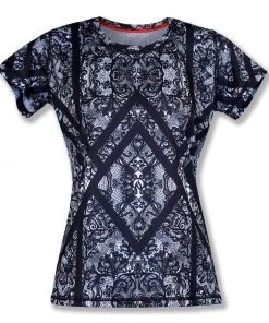 This Women’s Gatsby Tech Shirt has a bold Art Deco style that transports you to another place and time. Made with INKnBURN’s Dry I.C.E. Fabric this top is designed to keep you comfortable, chafe free and dry for any athletic activity. Perfect for New Year’s Eve runs and any special events you’ve been training hard for. But, there is no reason you can’t wear it for your next workout just because slipping on a little black lace makes you feel like a badass femme fatale!