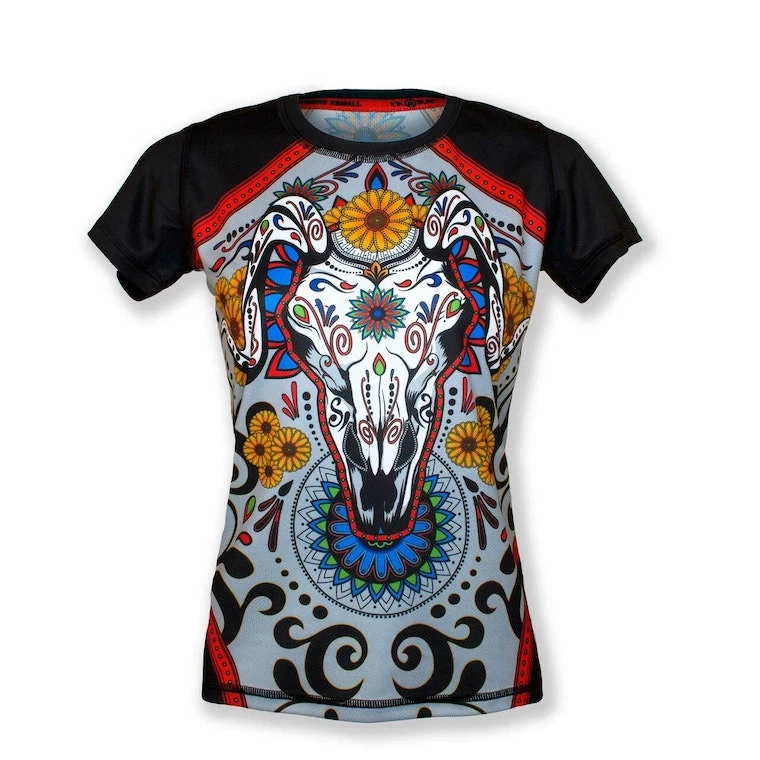 A new calavera styled design that features a goat skull. Why a goat you might ask? For starters, they just look cool! Second, goats are know for their incredible agility, who wouldn’t want to be able to run up a mountain like a goat? But, less well known, they also represent a state of peacefulness. The saying, “get your goat”, comes from the calming effect they have on skittish race horses. Competitors would steal a rival’s goat to upset them and get an advantage for an upcoming race. This wonderful sugar skull styled goat skull is a way to keep your goat, (and your fun), with you at all times!