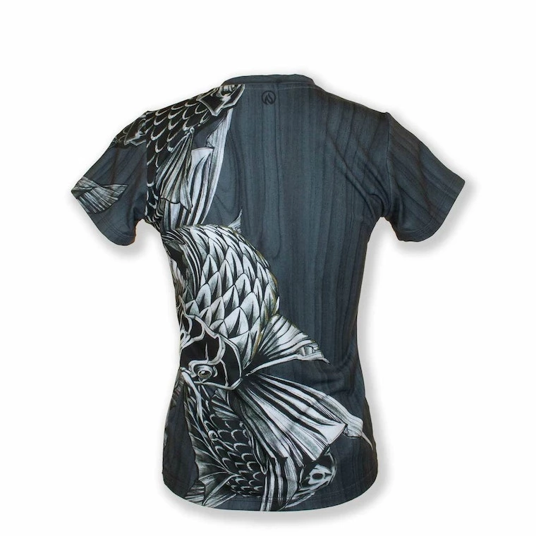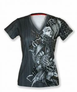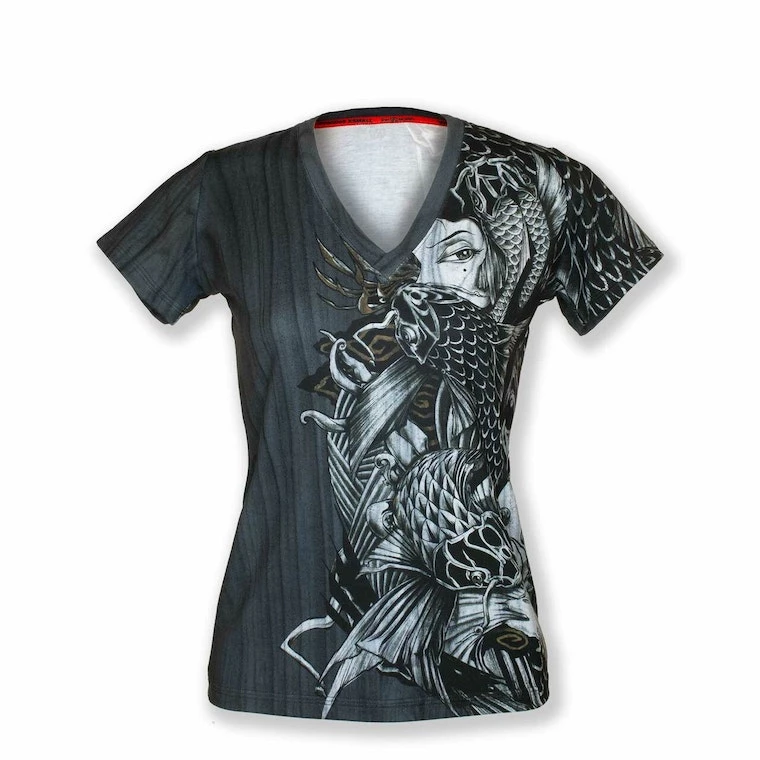 Lust. It can be a driving force if focused in a positive direction. You can lust for health, happiness or this stunning shirt illustrated by INB artist Sean Hatashita This new butter soft V-Neck has a weight and feel similar to cotton but, it wicks away moisture! Because INKnBURN prints their own vibrant lasting colors on each panel before they sew, their art goes from one soft seam to the other. They even print the size on the inside neckband so you don’t have a scratchy tag! This new wonderful feeling, cloud-soft Dry I.C.E. Fabric can be worn to work and then to workout! So comfy you could wear it to sleep, but so great looking you’ll want to wear it everywhere! And, the “V” neckline is perfect for framing your favorite necklace. The perfect top to feel as awesome as you look and spread smiles wherever you go!
