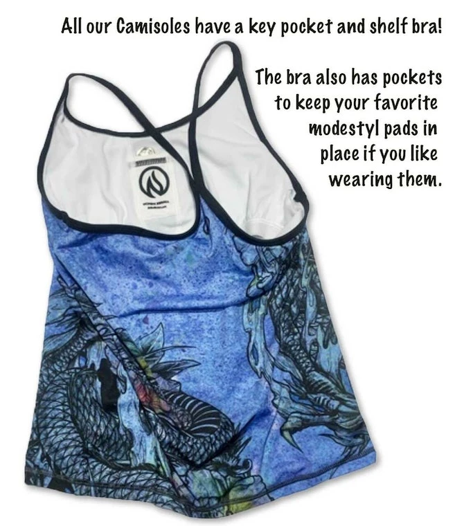 With white petals representing the moon, the Magnolia also sends a message of purity and kindness. Endurance is also an attribute since this seemingly delicate flower has survived on earth for almost 100 million years! An exotic, flattering and feminine workout top with a light, silky feel. The inner bra features pockets for modesty pads and a small cleavage pocket that you can use to stash a key or gel. Perfect for when you want to slip on one top and get out the door for your workout but, so pretty you’ll likely find a lot of other places to wear it too!