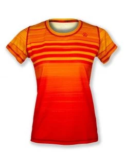 The INKnBURN Women’s Mango Tech Shirt features delicious shades of orange and orange-red that look painted on the fabric. A bright and colorful neutral that will go with many other items in your wardrobe. This design has high visibility color to make you easily seen! This light-weight, tech shirt is designed for speed, but also works well as a cool, kick-back top that won’t show sweat! INKnBURN apparel doesn’t fade, so this tech will look great years from now! Vibrant art you can’t feel, on our super-light, moisture-wicking Dry I.C.E. Fabric. 100-Mile tested by ultra runners for comfort at extreme distance and a unique, head-turning design.