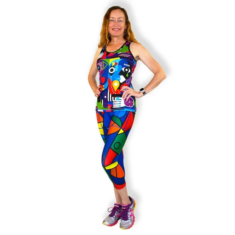 On first glance this singlet might look like a cheerful nod to Pablo Picasso and his adventurous art, but as you look closer, you’ll see something the art genius might have done if he loved exercise as much as we do. Our favorite Picasso quote, ““If I paint a wild horse, you might not see the horse… but surely you will see the wildness!” This design is all about the energy and endorphins that come from getting in your workout!