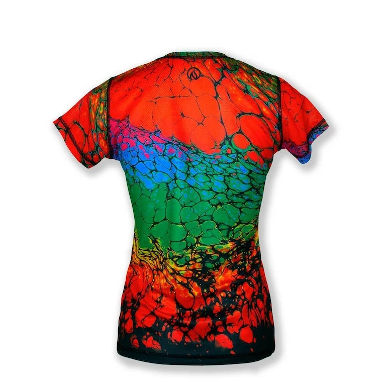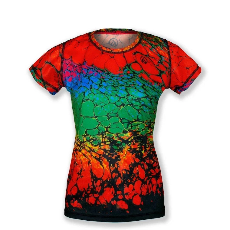 This stunning shirt was created with poured acrylics and a blow torch by artist Tristan Lawrence. They say, “Don’t play with fire!” but when the results are this great, Playing With Fire is a go! This light-weight, tech shirt is designed for speed, but also works well as a cool, kick-back top that won’t show sweat! INKnBURN apparel doesn’t fade, so this tech will look great years from now! Vibrant art you can’t feel, on its super-light, moisture-wicking Dry I.C.E. Fabric. 100-Mile tested by ultra runners for comfort at extreme distance and a unique, head-turning design.