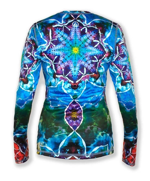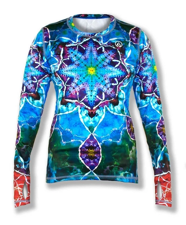 The Women’s Tie Dye Mandala Tech Pullover with Thumbholes takes the colorful and organic look of tie dye and combines it with the healing visual rhythm of the mandala. Radiant and energetic, this top will get you inspired to workout! If you haven’t tried and INKnBURN pullover before, you are in for a treat! They feel velvety soft on the inside, smooth and silky on the outside. The brushed interior keeps warmth in while still wicking away moisture and letting air circulate through. The longer sleeves with thumbholes give you the option of pulling them down over your hands for extra warmth. This piece is designed for layering so size down if you want it fitted!