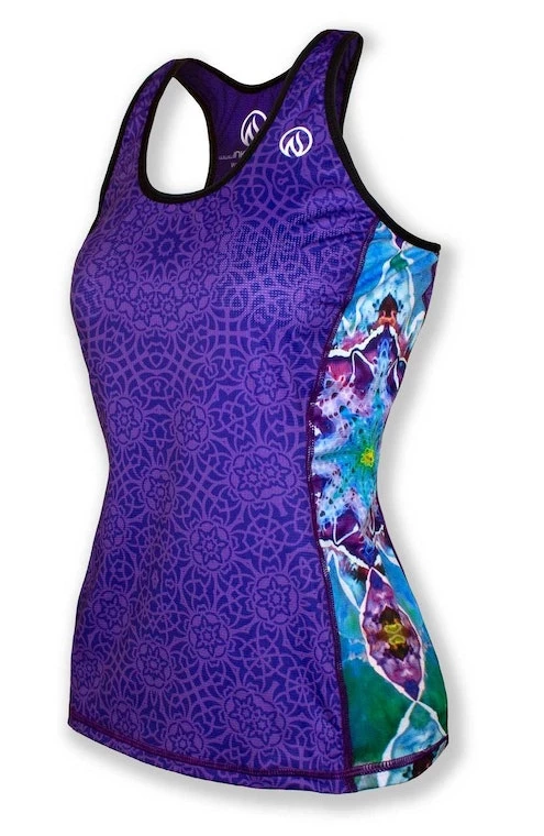 INKnBURN Women’s Violet Tie-Dyed Mandala Racerback Tank Top (XS) | Sleeveless