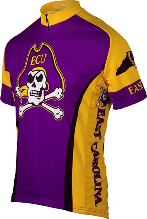 EAST CAROLINA FANS put miles on the road and REPRESENT WHILE YOU RIDE in this officially licensed garment from Adrenaline Promotions. Fully sublimated road bike jersey with raglan sleeves, frac34; length hidden zipper for ventilation, and three rear cargo pockets for great storage on longer rides. Moisture wicking Dri-Sport fabric helps pull sweat away from your body and regulate temperature. Available in sizes S – XXL