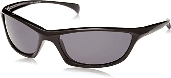 Wrap sunglasses featuring rectangular lenses and small logo at temple