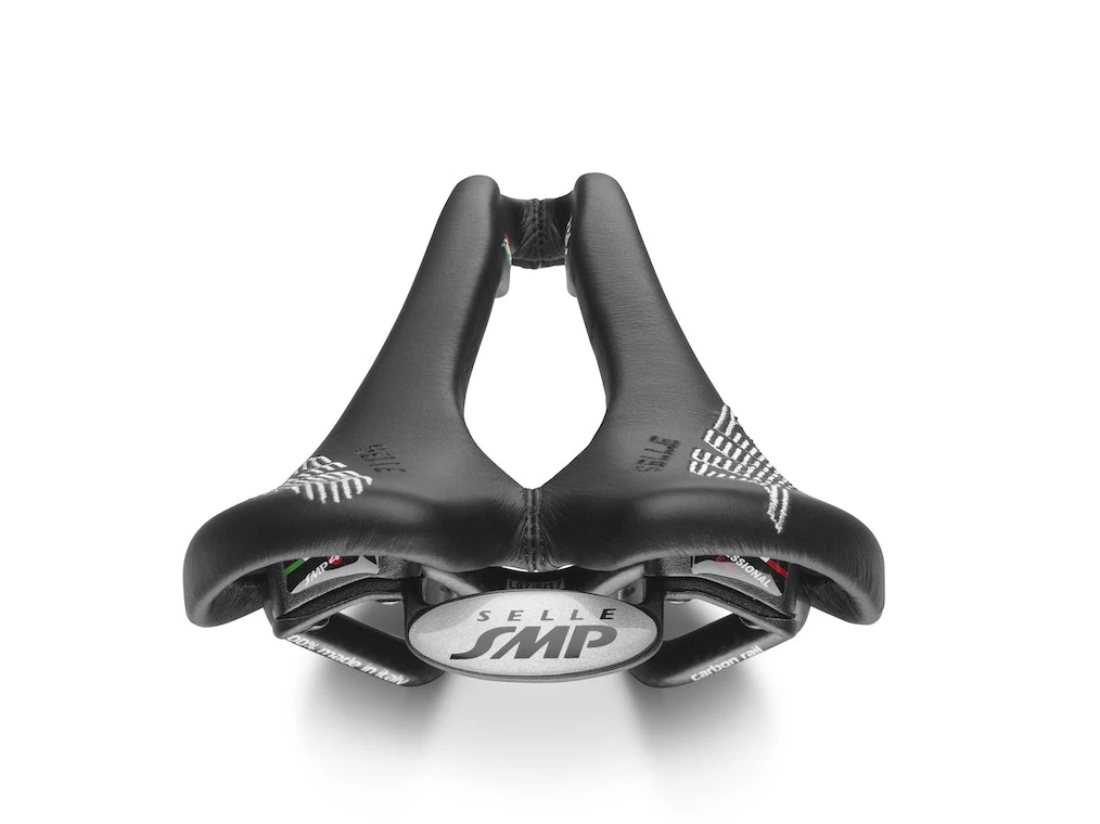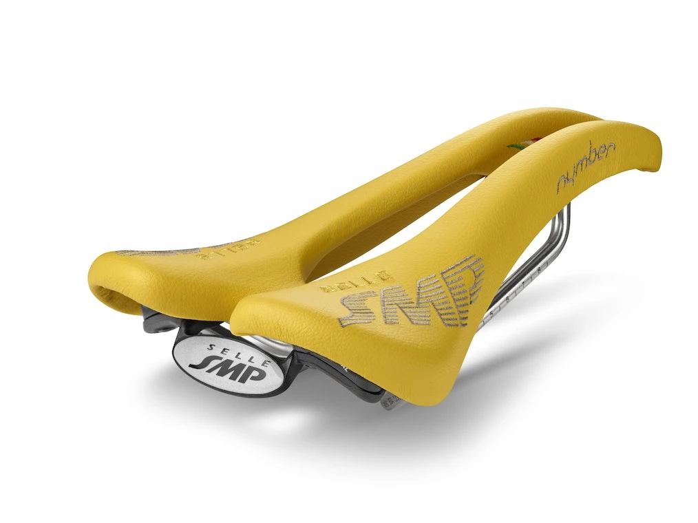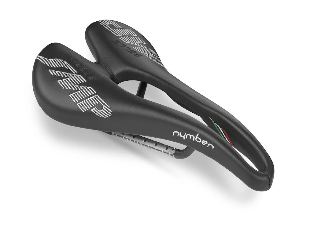 The race-focused Selle SMP Nymber saddle features the same shell as the Vulkor, but with added padding; giving the Nymber the versatility necessary for use in any kind of cycling. The patented features by Selle SMP, such as the completely free central channel, the original eagle-beak nose & the raised rear allow for aerodynamic positioning without sacrificing comfort. Handmade in Italy.