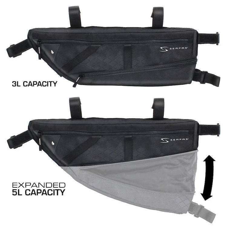 The perfect bag for a wilderness adventure or an all day ride around town. The Serfas© Ark Expandable Half-Frame Bag can adapt to accommodate more gear with its expandable bottom and will resist the elements with its durable water resistant construction. Thirsty? Pack your favorite water bladder (not included) and route the hose through the integrated Hydration Port.