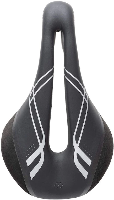 • Seamless bond between Dura-tek cover and micro suede panels provides a smooth contact surface to reduce chafing • Screen-printed graphics and perforations • Largest cutaway in the Terry saddle line • Length x width: 250mm x 149mm • Weight: 235 grams • Rails: Ti-316