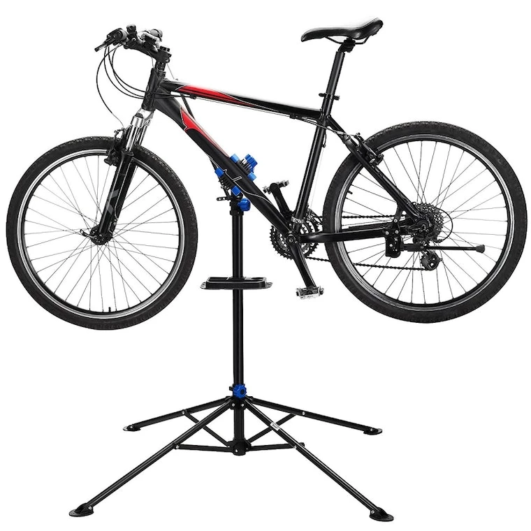 Rugged frame: The heavy-duty structure and 4-legged base of the Bike Stand securely support and grab the bike, making it easier to repair and clean your bike.