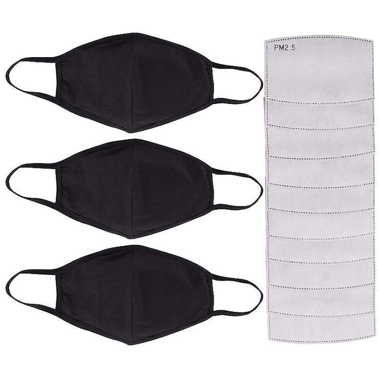 - Packaging Includes: This is a set of 3 Reusable Face Masks with 10 Pieces of PM 2.5 activated carbon filters. The Cotton Masks come with a pocket at the backside to slide in the filter.