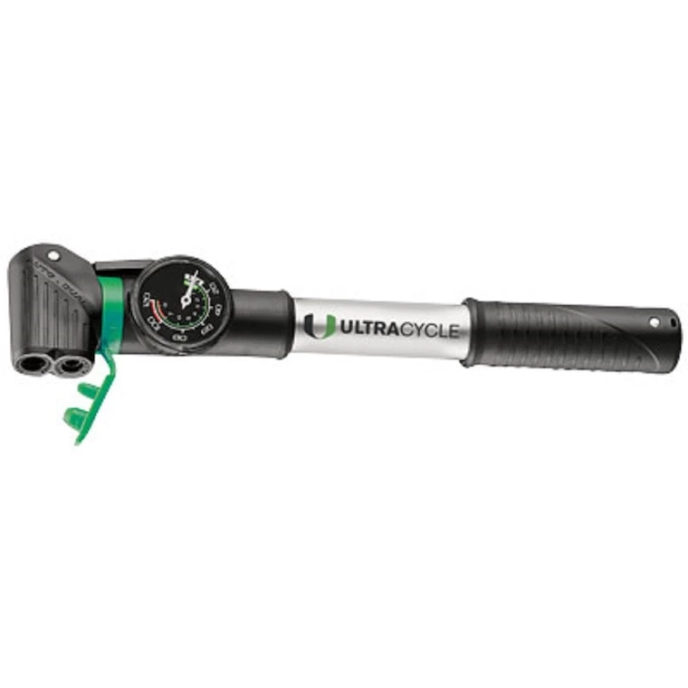 The Ultracycle Hand Thrust is perfect to carry a long on your rides. This small pump features a dual head design so both Schrader and Presta valves can be used. The included gauge allows you to accurately inflate your tires.