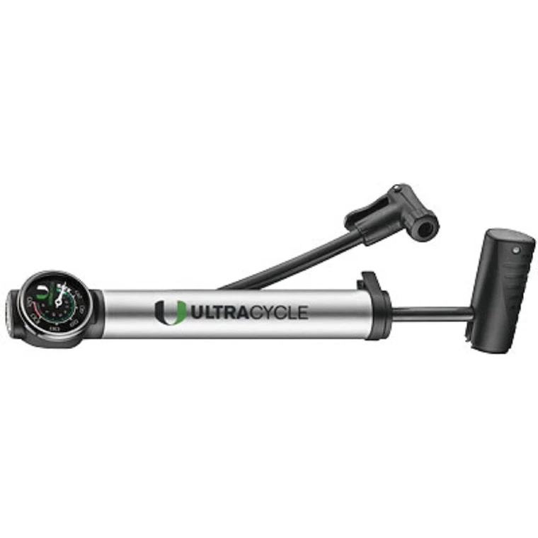 The Ultracycle Hand Thrust with Hose, is a perfect to carry a long on your rides. This small pump features a hose to make inflating your tires easier. The large pressure gauge allows you to accurately inflate your tires.