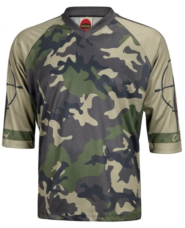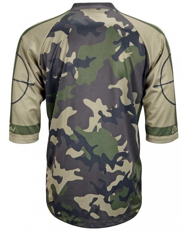 The Outlaw Camo Green Men’s Mountain Bike Jersey features a 3/4 length sleeve and a loose fitting casual style. The loose fit on this mountain bike jersey provides great mobility while on the trail while still providing ample room for protective gear. The jersey also features a flat V Neck collar which provide a great fit. Like most jerseys this mountain bike jersey is constructed out of dry sport polyester. The breathable lite weight fabric works to wick moisture away from the skin to keep you dry and cool on those hot days out on the trail. The jersey has no elastic on the waist of cuffs and no pockets. Its perfect for use with a hydration pack.