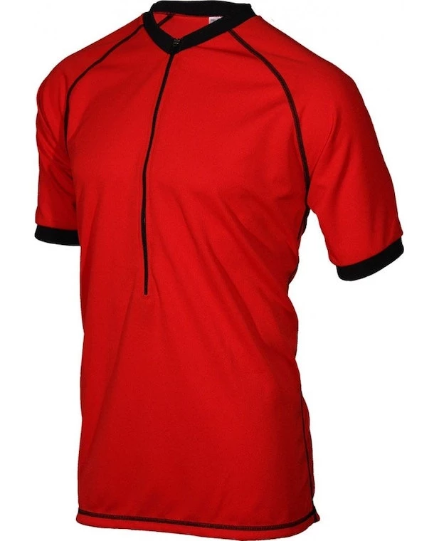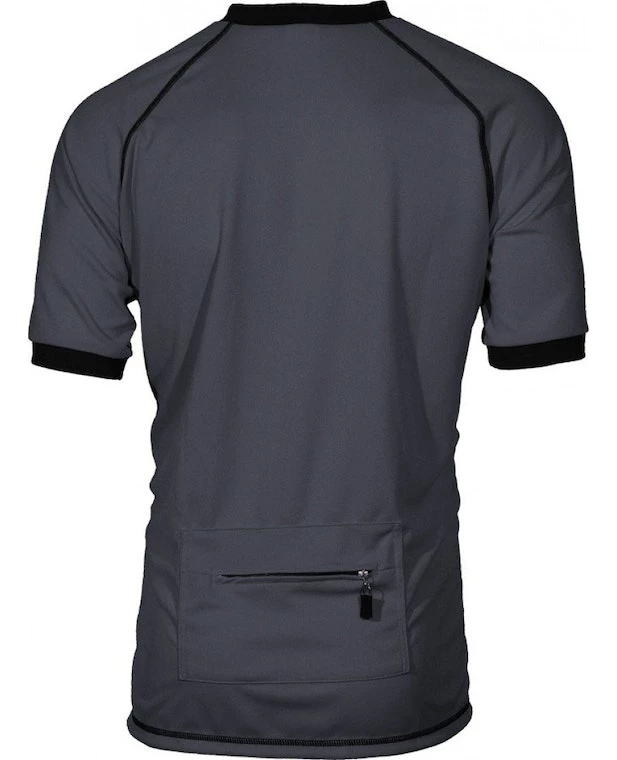 Made out of DrySport wicking polyester keeps you cool and dry. Casual style mountain bike jersey. Crew neck. 15′ front zipper. Zippered rear pocket. Contrasting flat seam stitching.